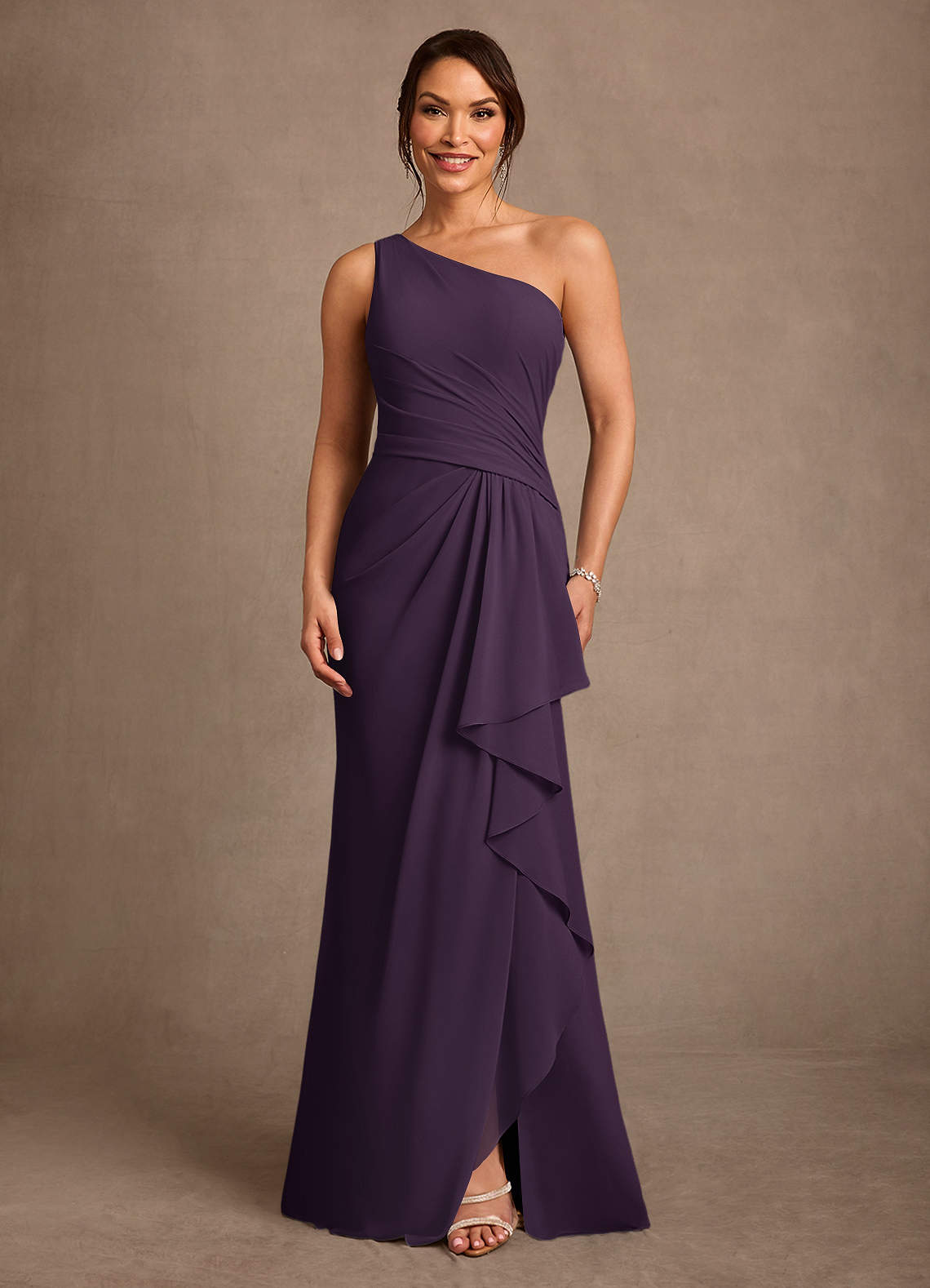 Plum Sheath One Shoulder Chiffon Dress