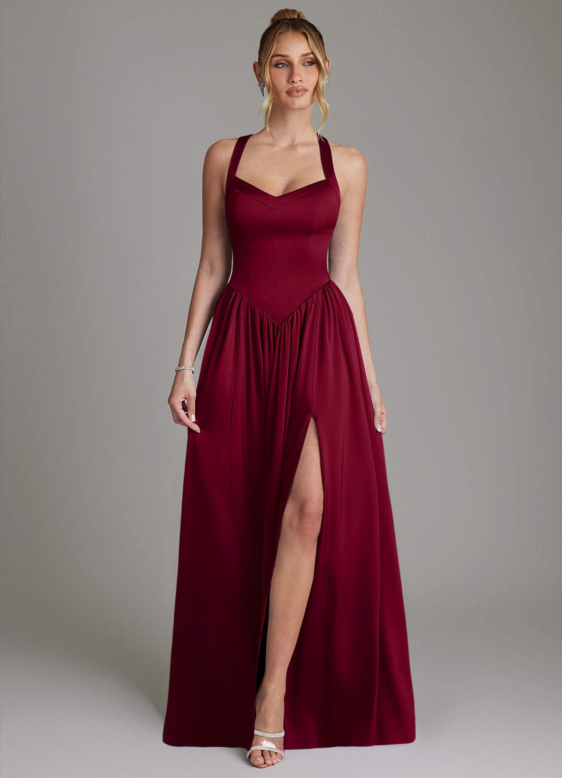 Burgundy A-Line Corset Stretch Satin Dress