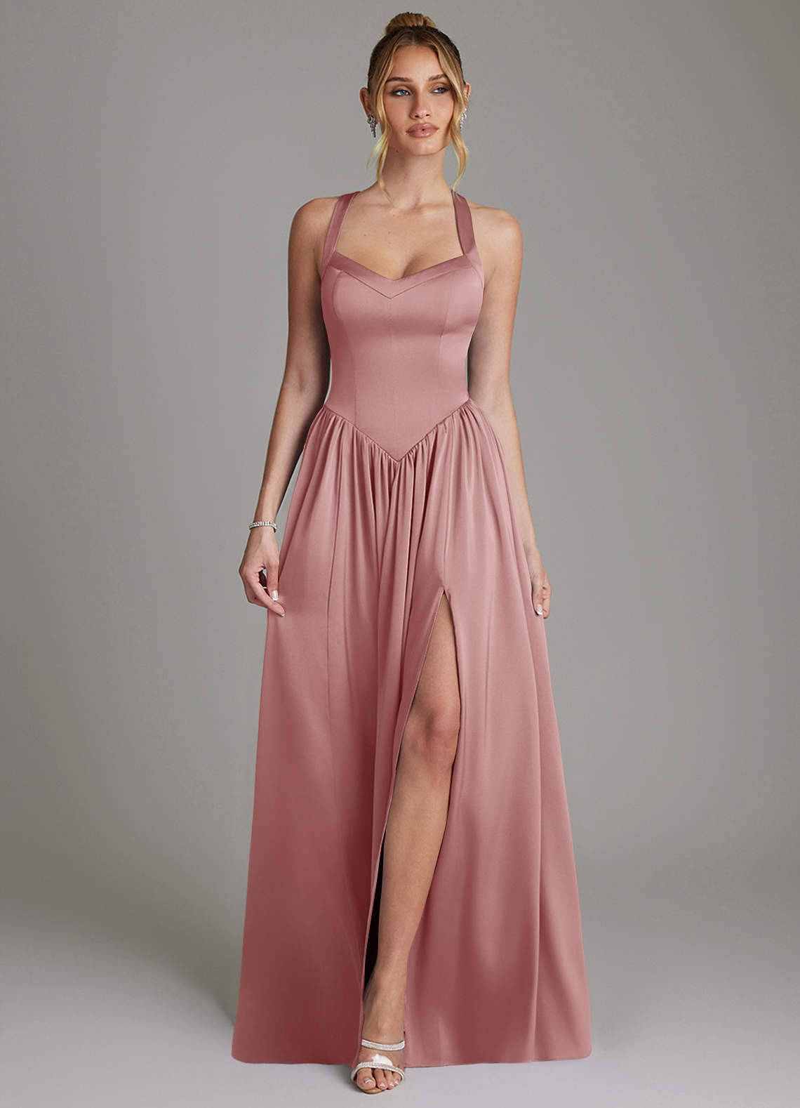 Dusty Rose A-Line Corset Stretch Satin Dress