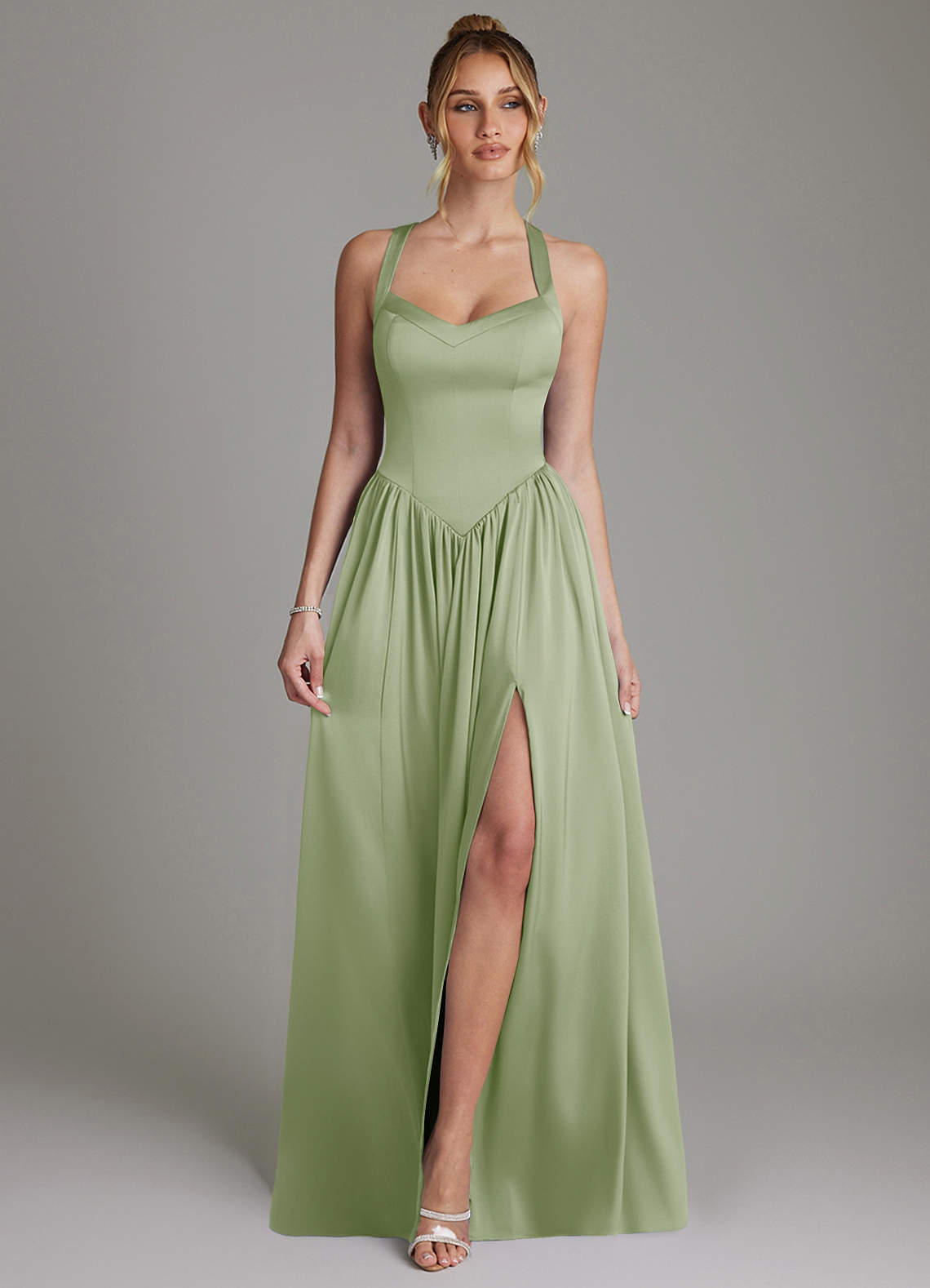 Dusty Sage A-Line Corset Stretch Satin Dress