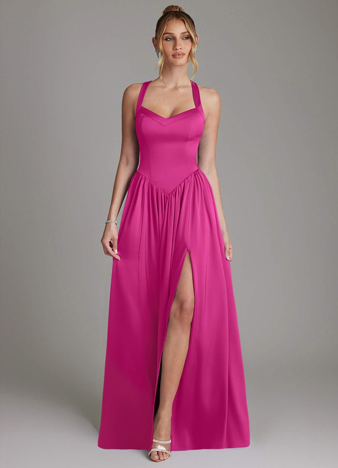 Fuchsia A-Line Corset Stretch Satin Dress