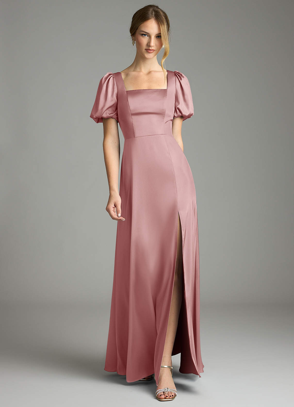Dusty Rose A-Line Pleated Stretch Satin Dress