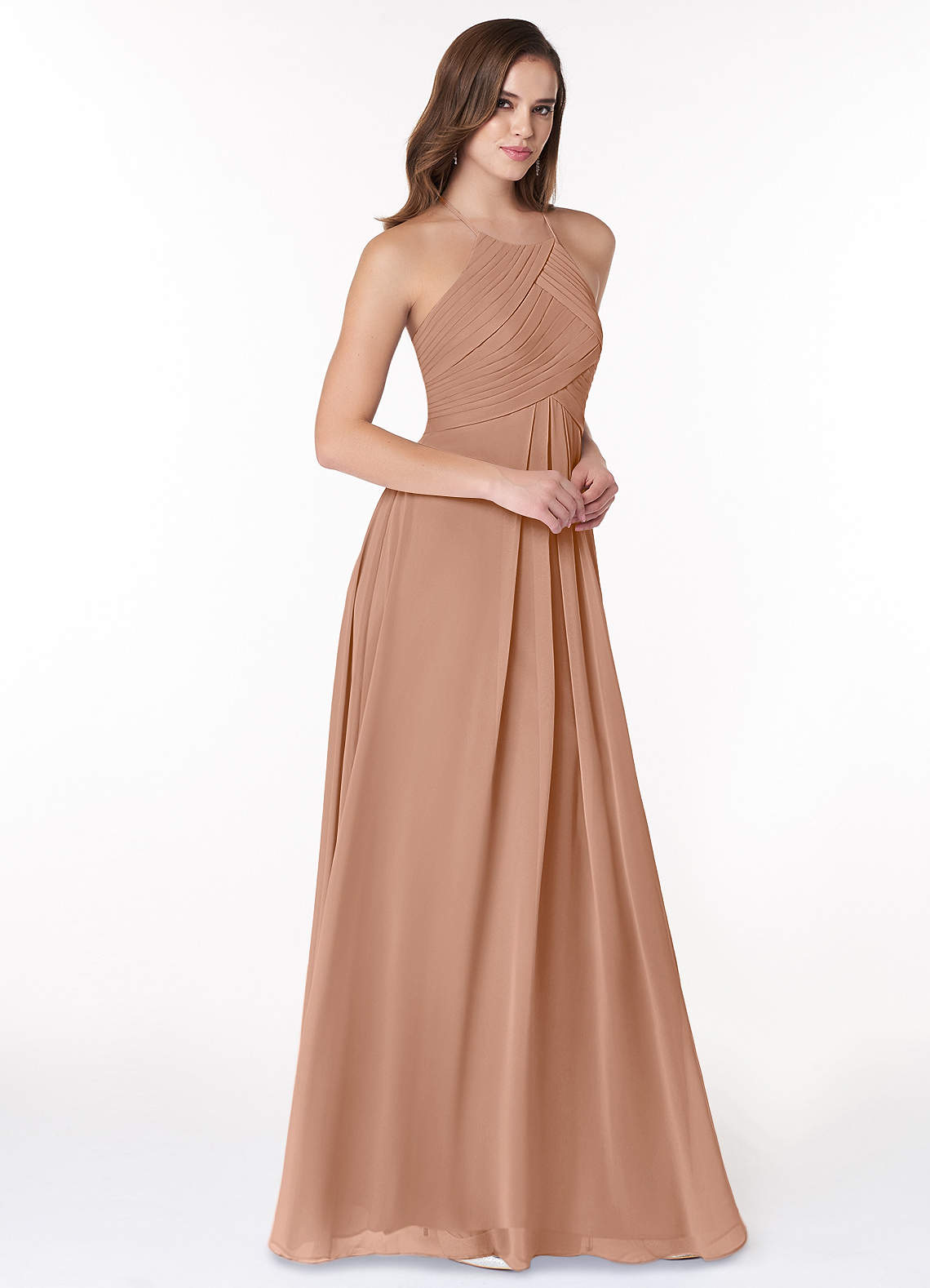 Champagne Rose A-Line Halter Pleated Chiffon Dress