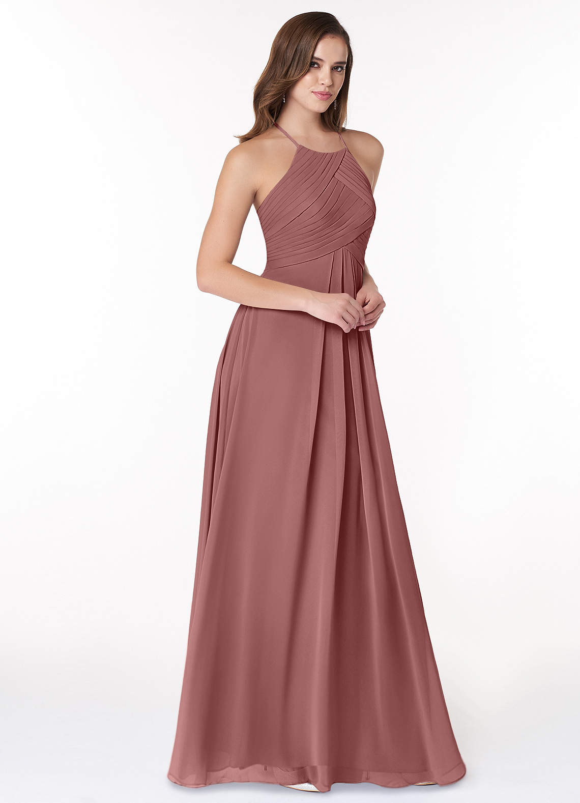 Desert Rose A-Line Halter Pleated Chiffon Dress