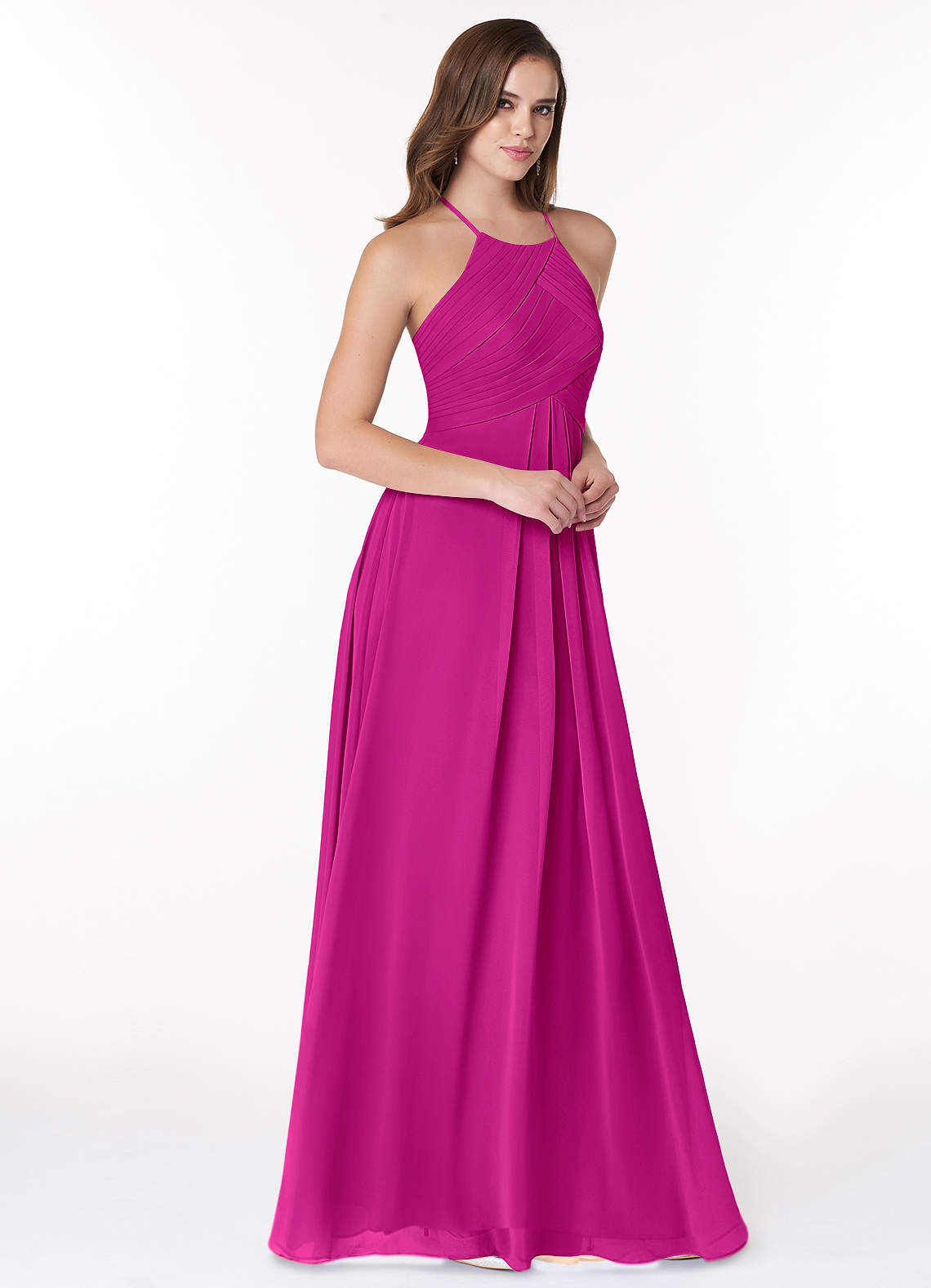 Fuchsia A-Line Halter Pleated Chiffon Dress