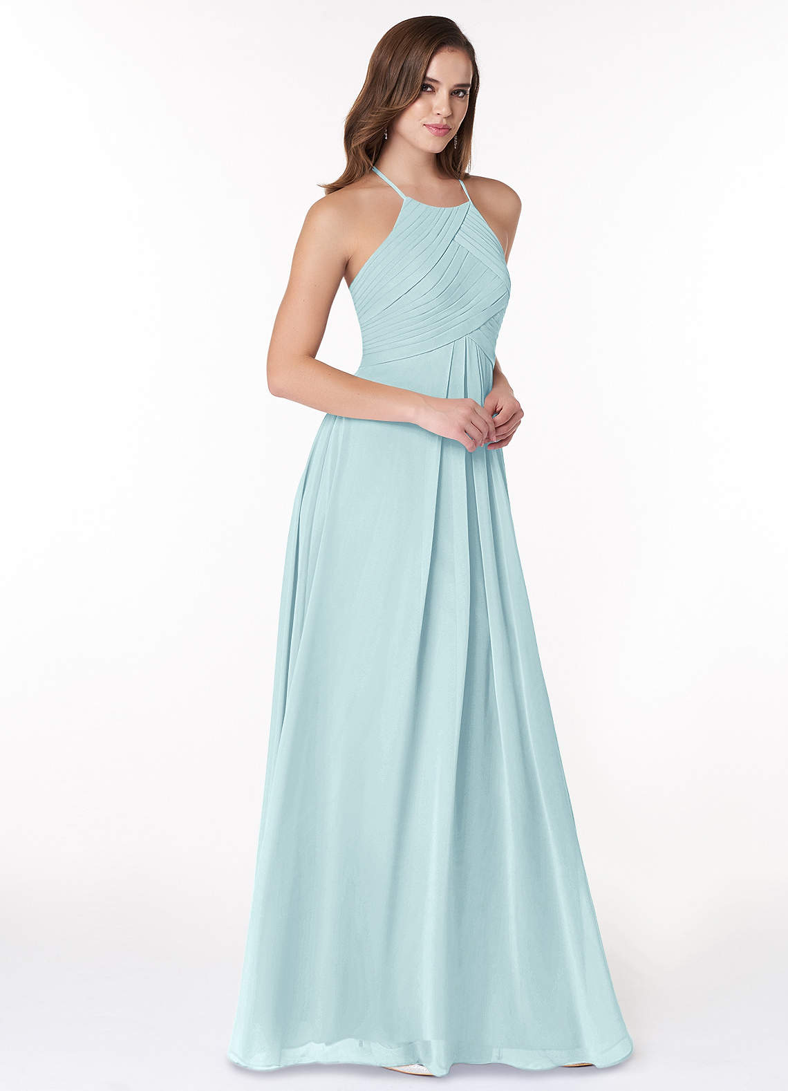 Sea Glass A-Line Halter Pleated Chiffon Dress