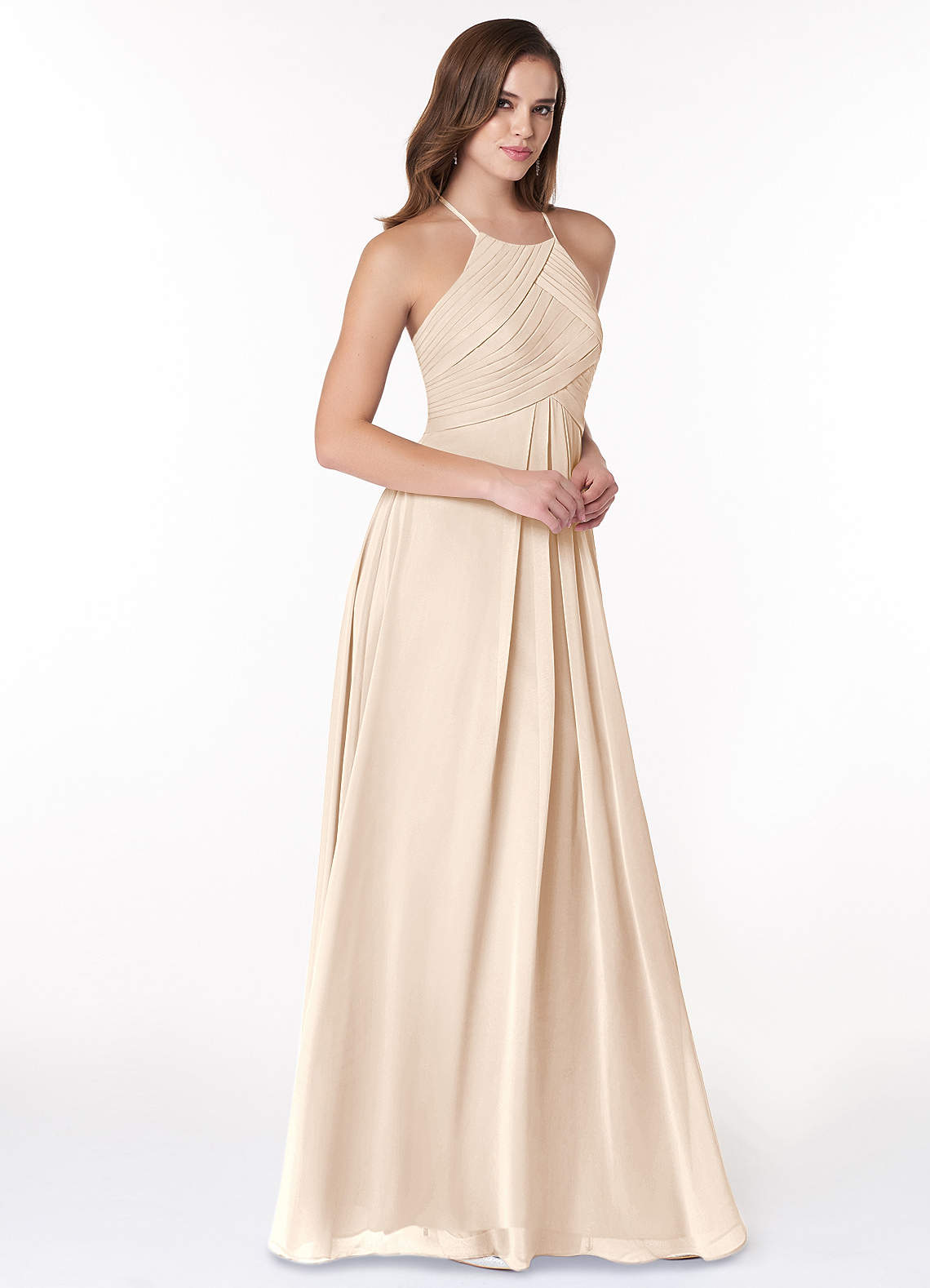 White Alabaster A-Line Halter Pleated Chiffon Dress