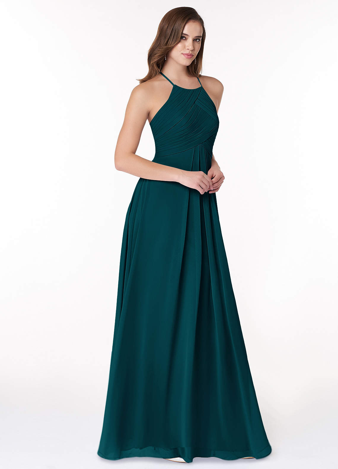 Pine A-Line Halter Pleated Chiffon Dress
