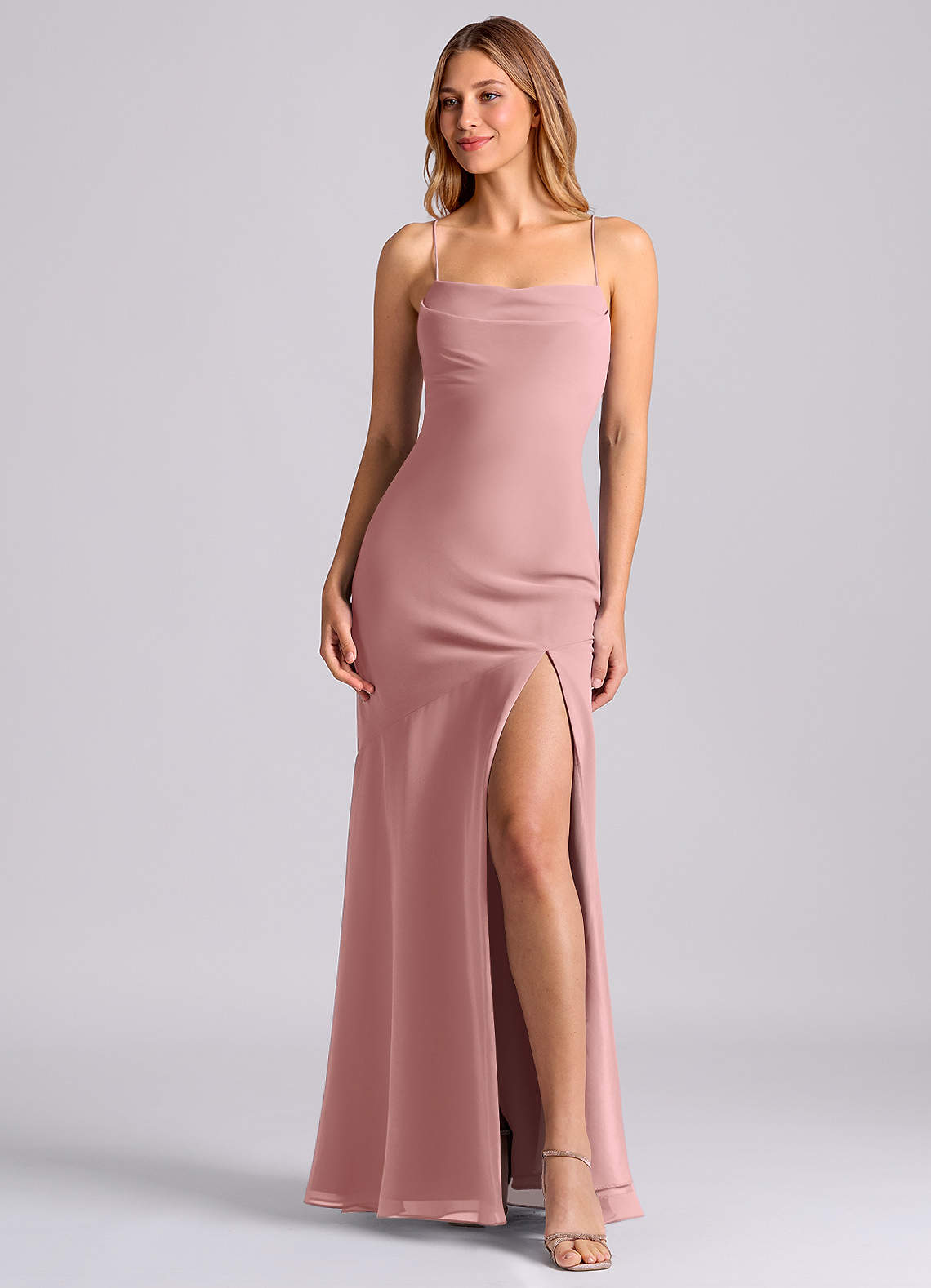 Azazie Grata Bridesmaid Dresses Dusty Rose Mermaid Pleated Chiffon Dress image1