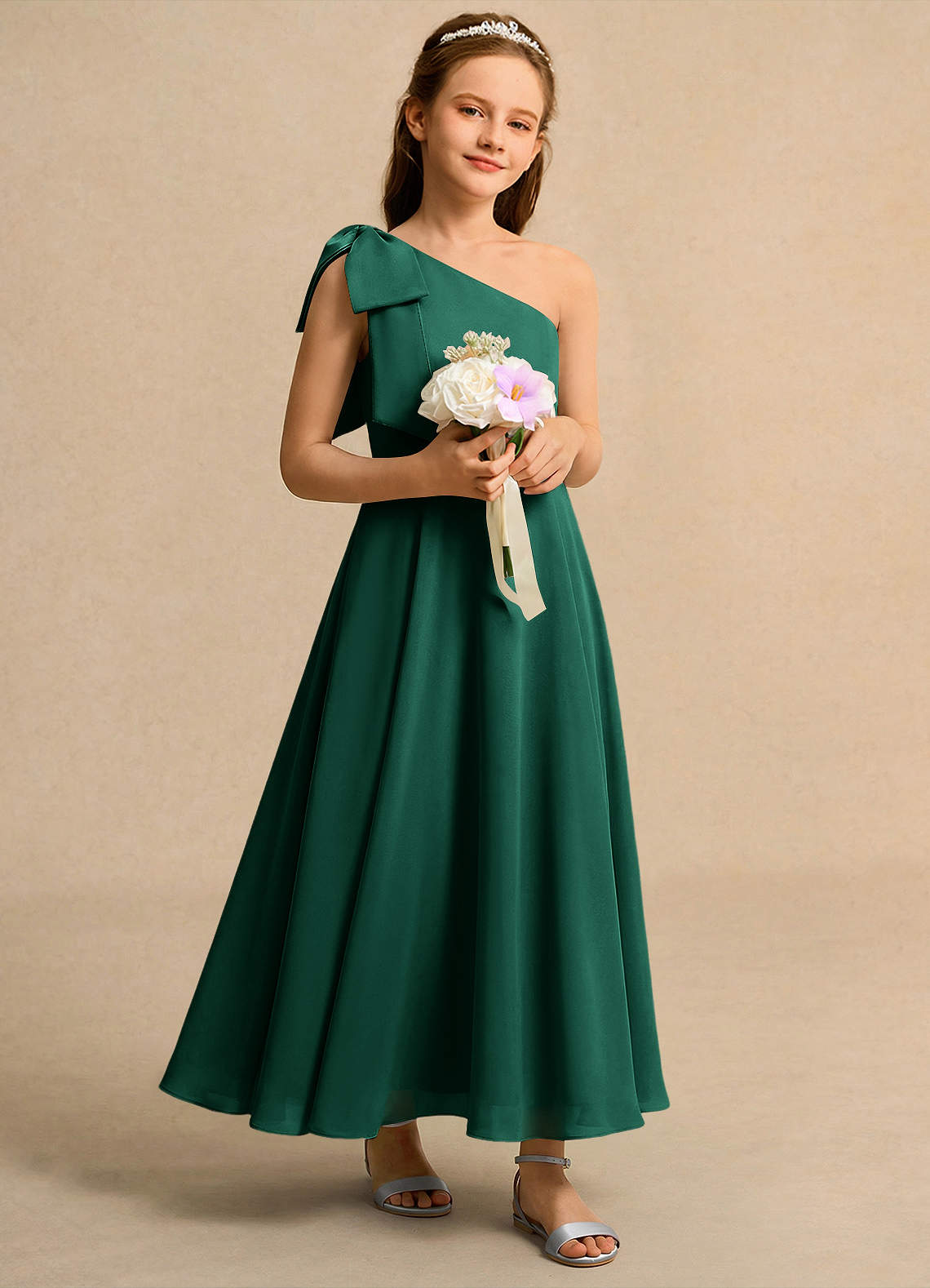 Emerald A-Line One Shoulder Chiffon Dress