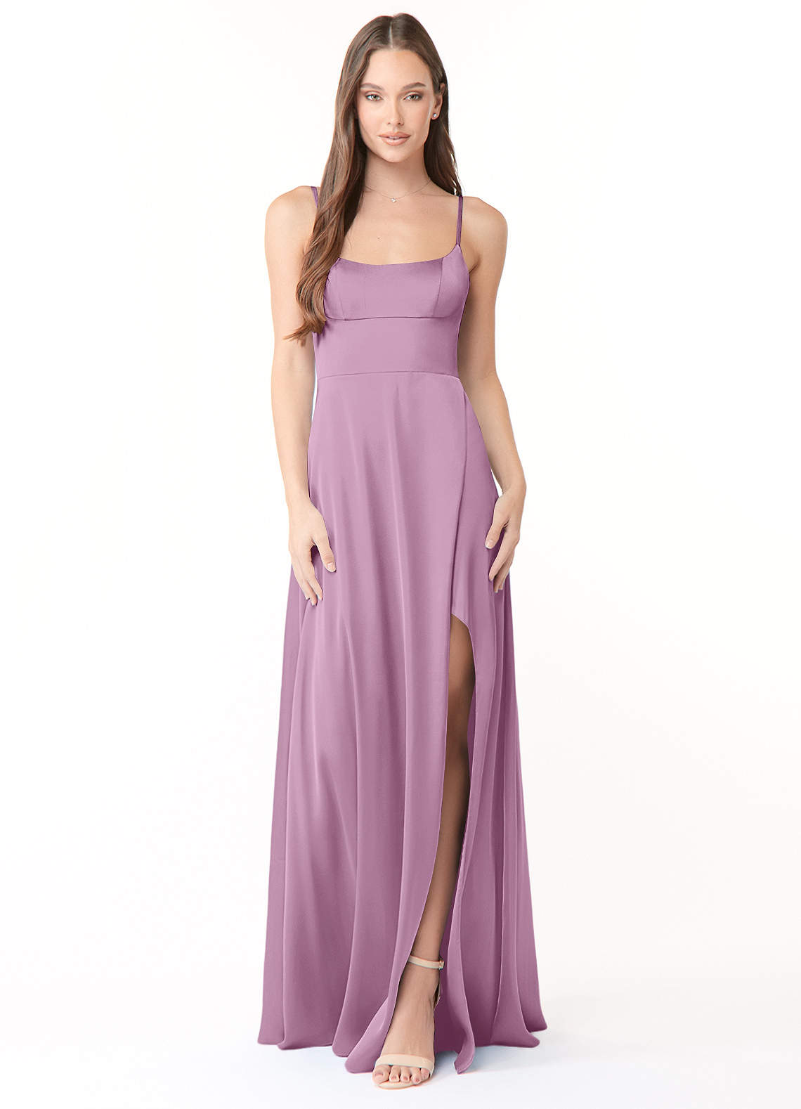 Wisteria A-Line Side Slit Stretch Satin Dress