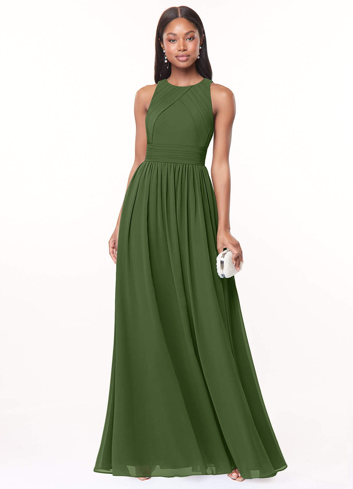 Olive A-Line Pleated Chiffon Dress