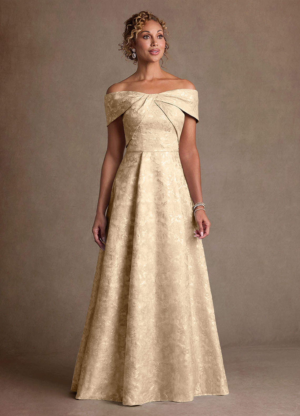 Champagne A-Line Off the Shoulder Floral Jacquard Dress