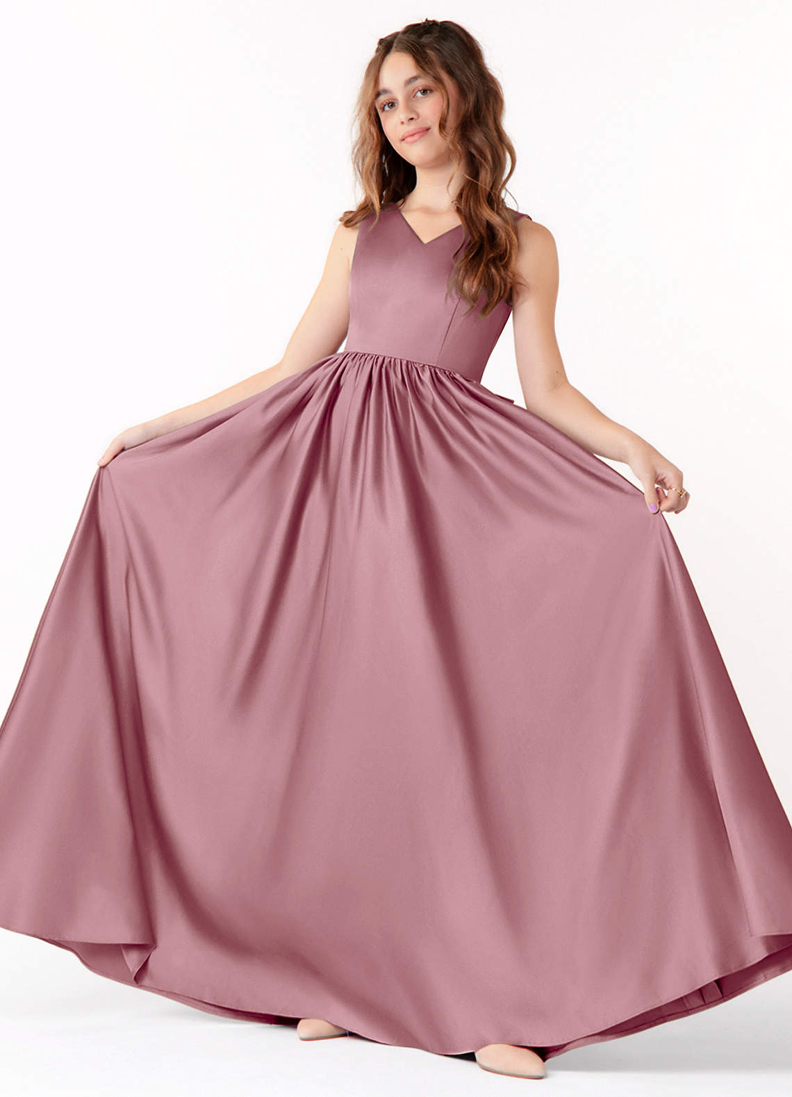 Vintage Mauve A-Line Bow Stretch Satin Dress