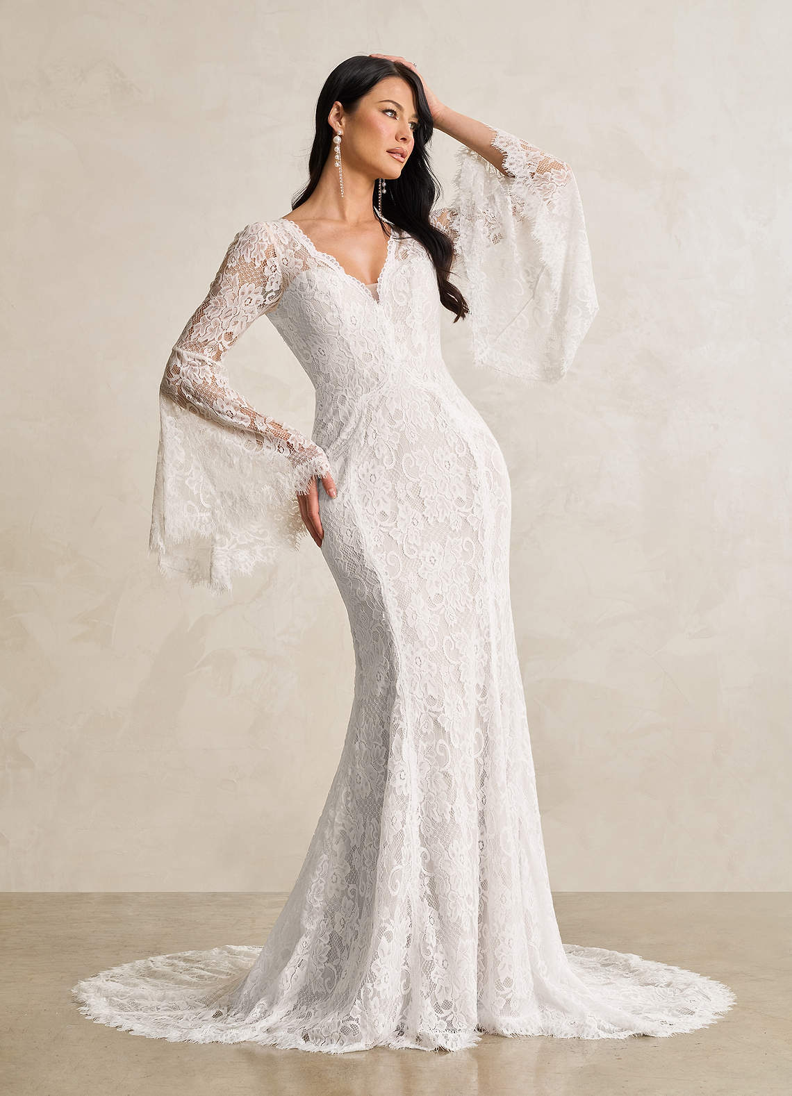 Diamond White Mermaid V-Neck Lace Dress