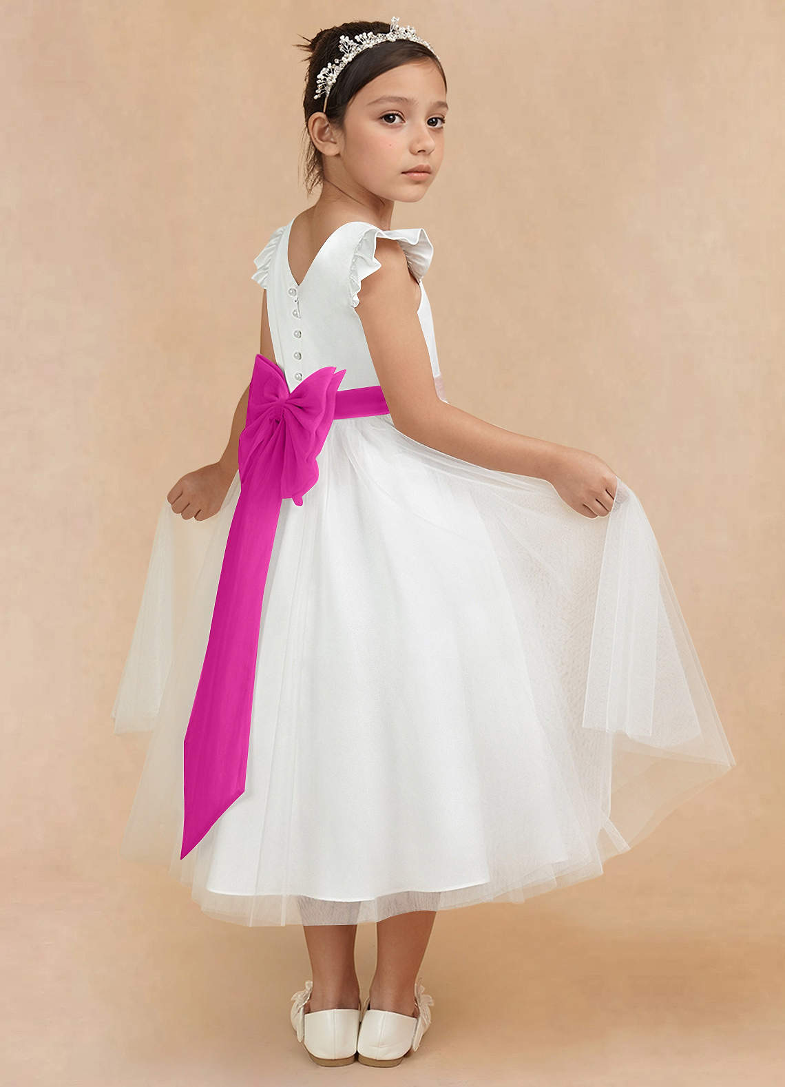 Ivory Fuchsia A-Line Bow Tulle Dress