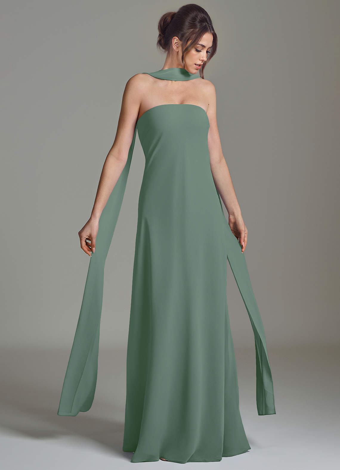 Eucalyptus A-Line Strapless Chiffon Dress