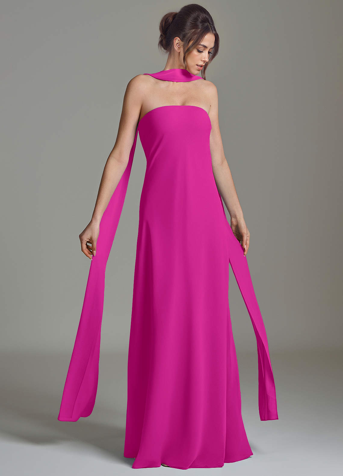 Fuchsia A-Line Strapless Chiffon Dress