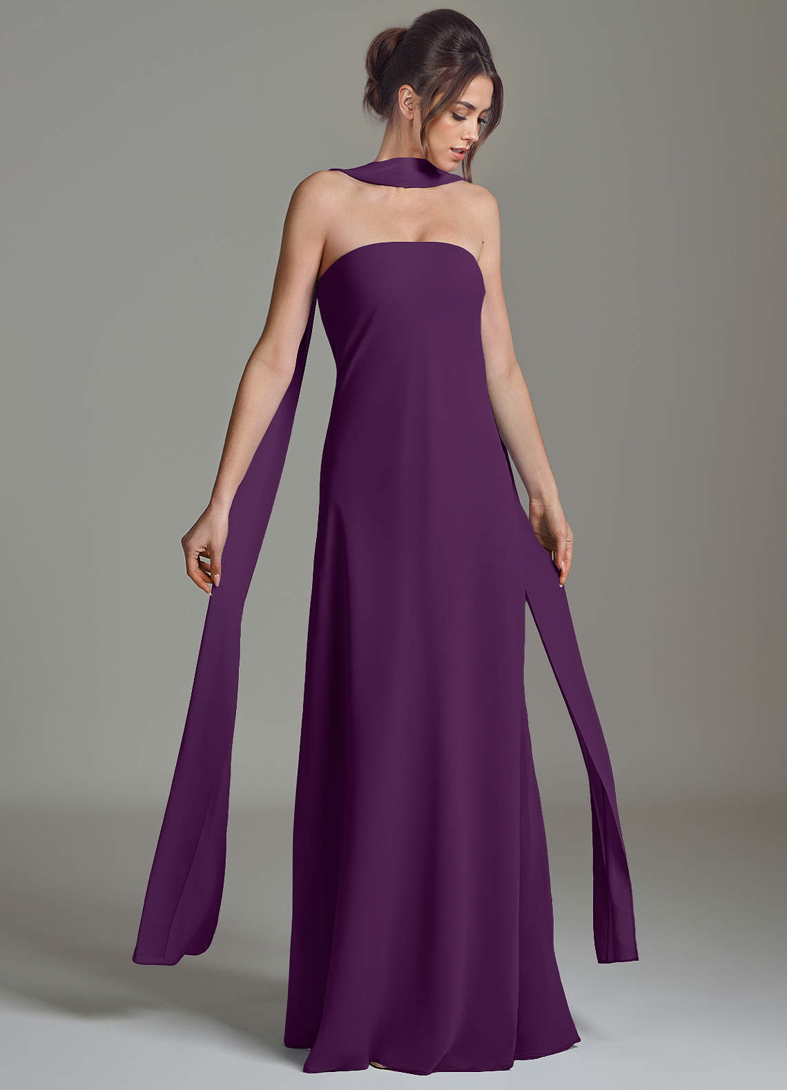 Grape A-Line Strapless Chiffon Dress