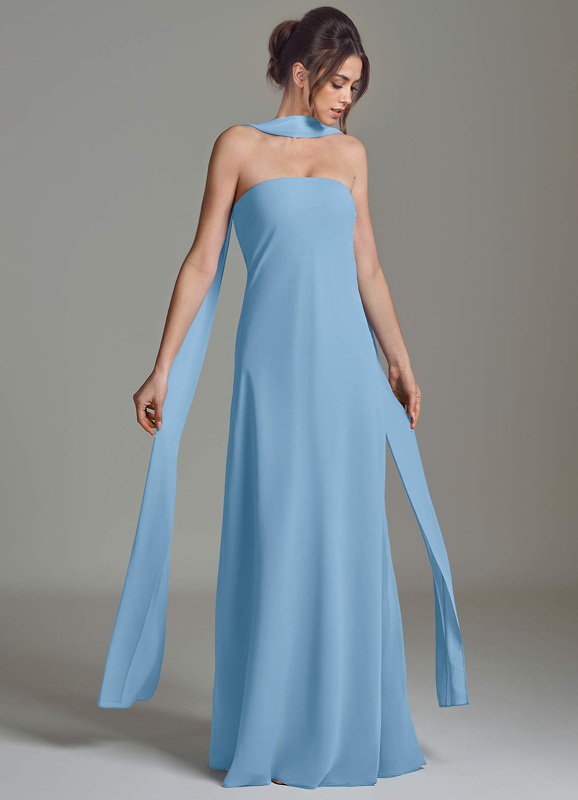 Steel Blue A-Line Strapless Chiffon Dress