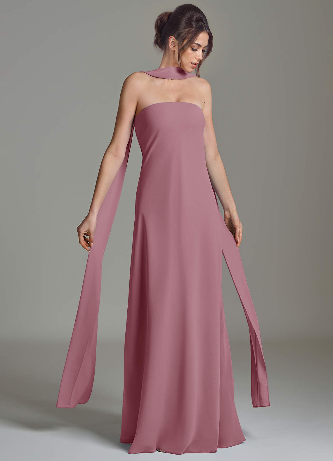 Vintage Mauve A-Line Strapless Chiffon Dress