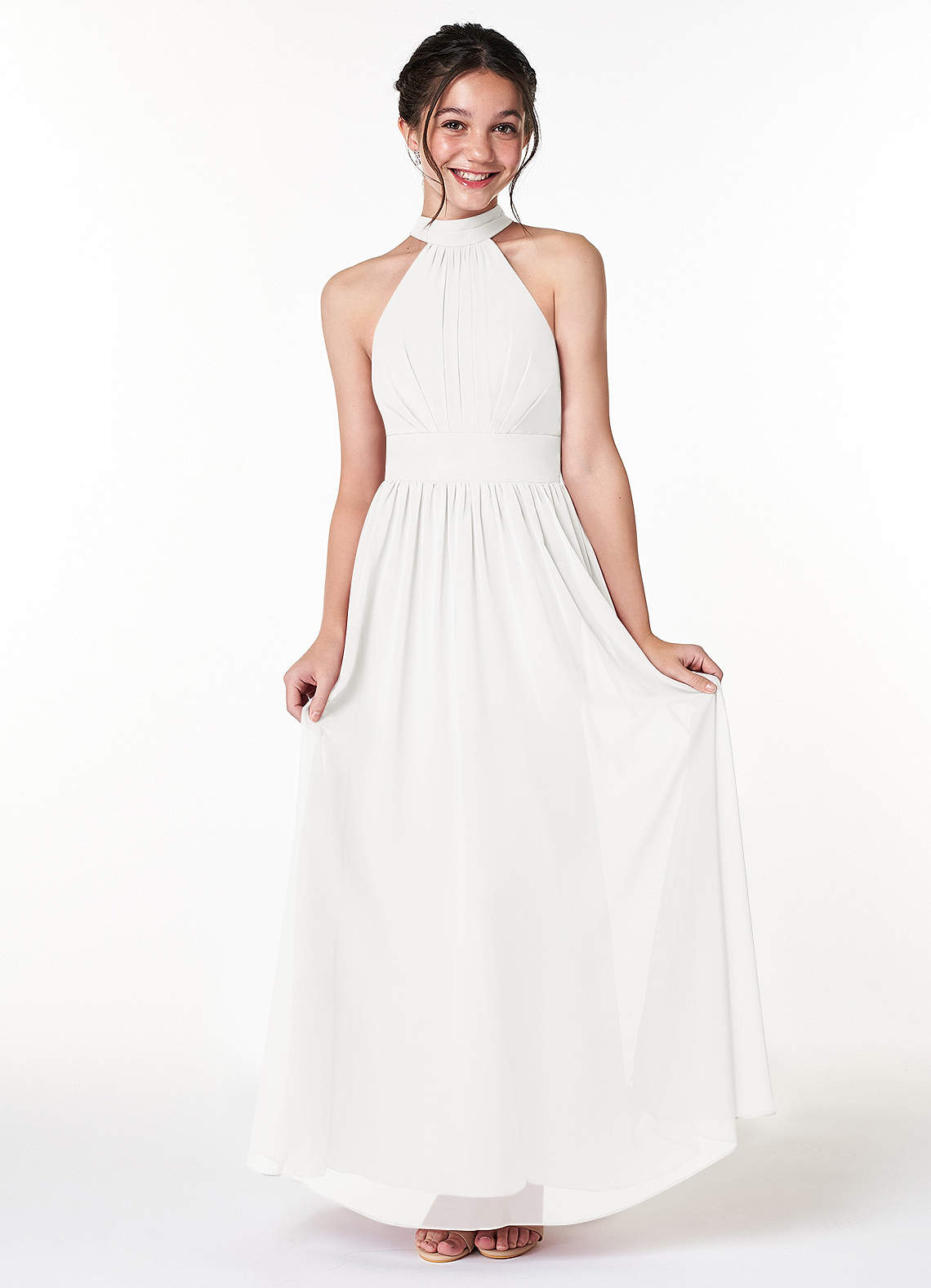 White A-Line Pleated Chiffon Dress