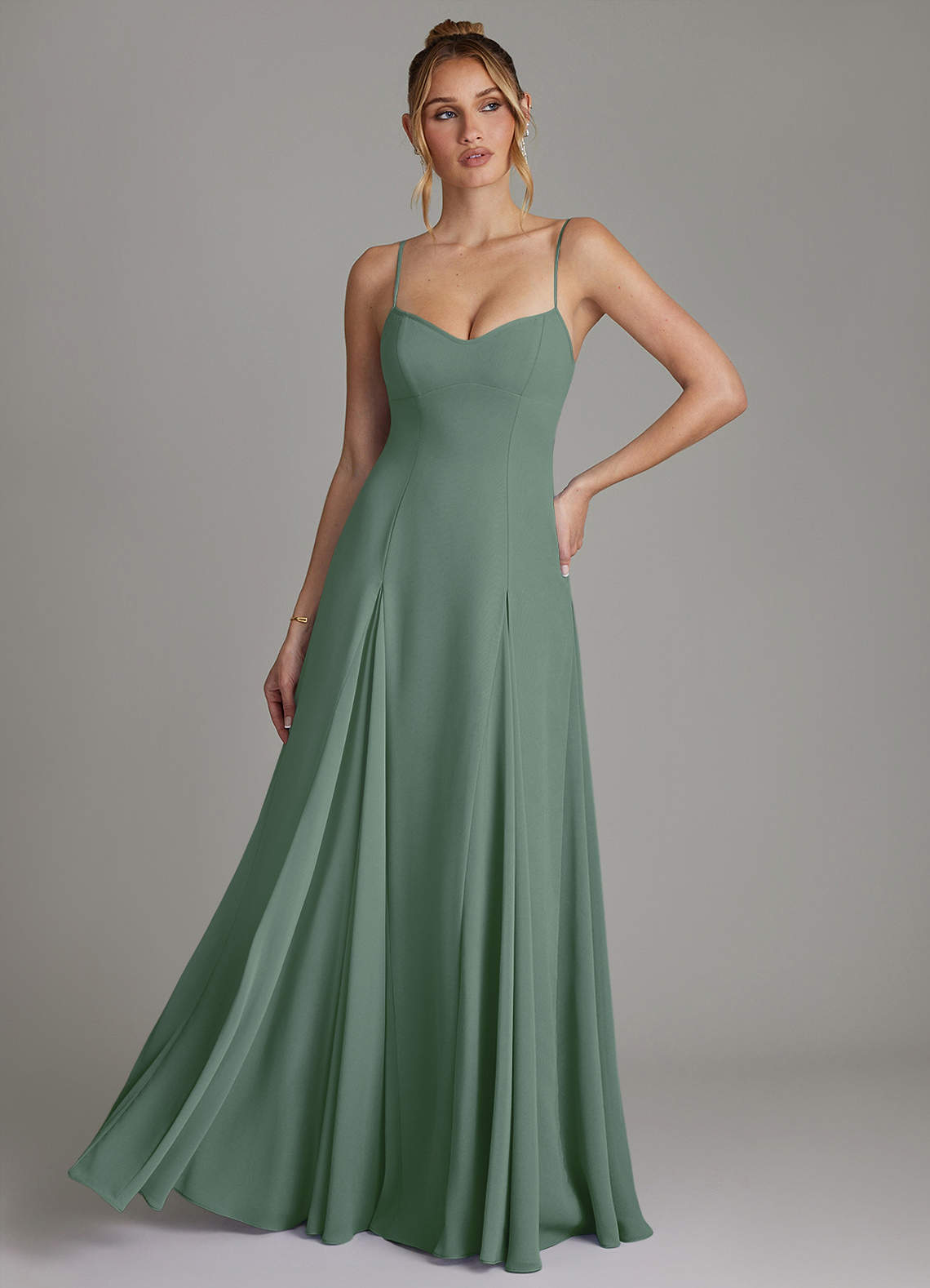 Eucalyptus A-Line Sweetheart Neckline Chiffon Dress