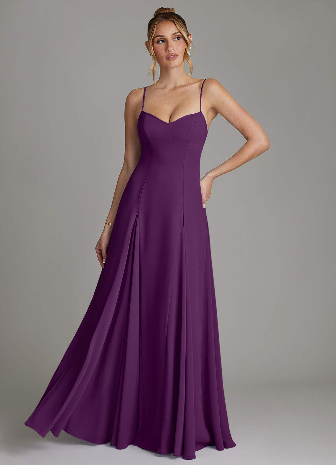 Grape A-Line Sweetheart Neckline Chiffon Dress