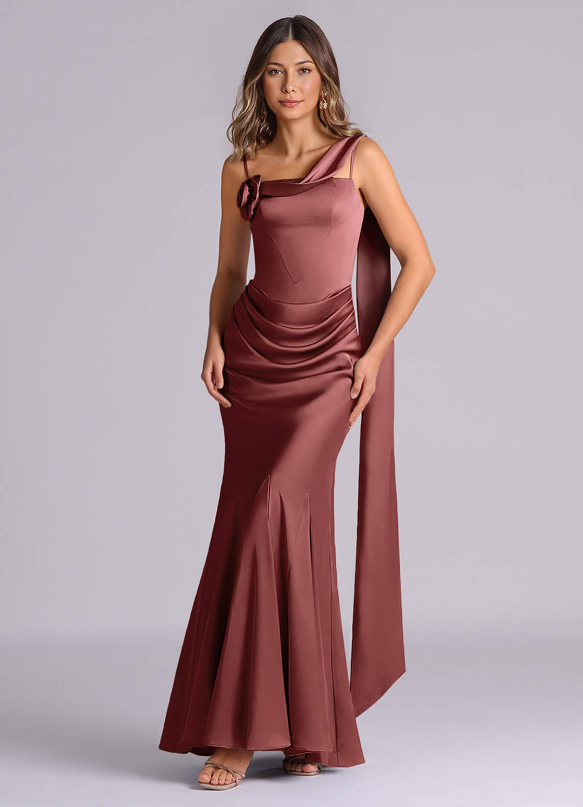 Amethyst Mermaid Pleated Stretch Satin Dress