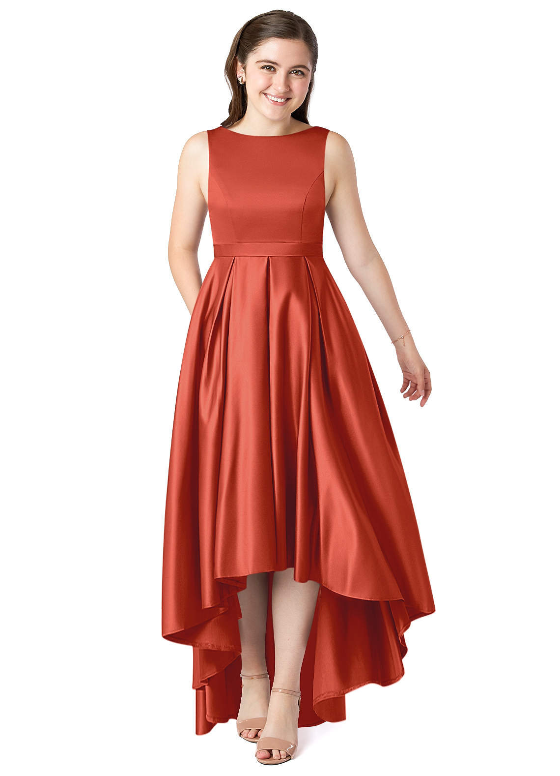 Rust A-Line with Belt Stretch Satin Dress