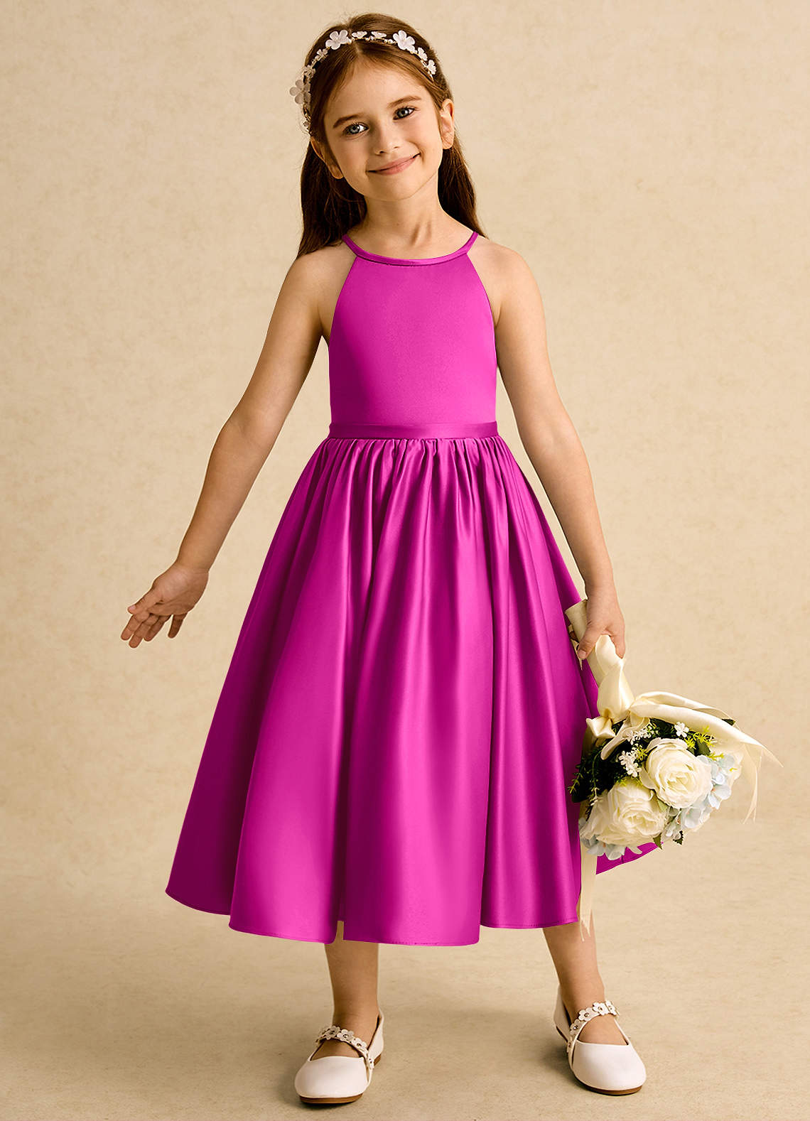 Powder Pink A-Line Bow Matte Satin Dress