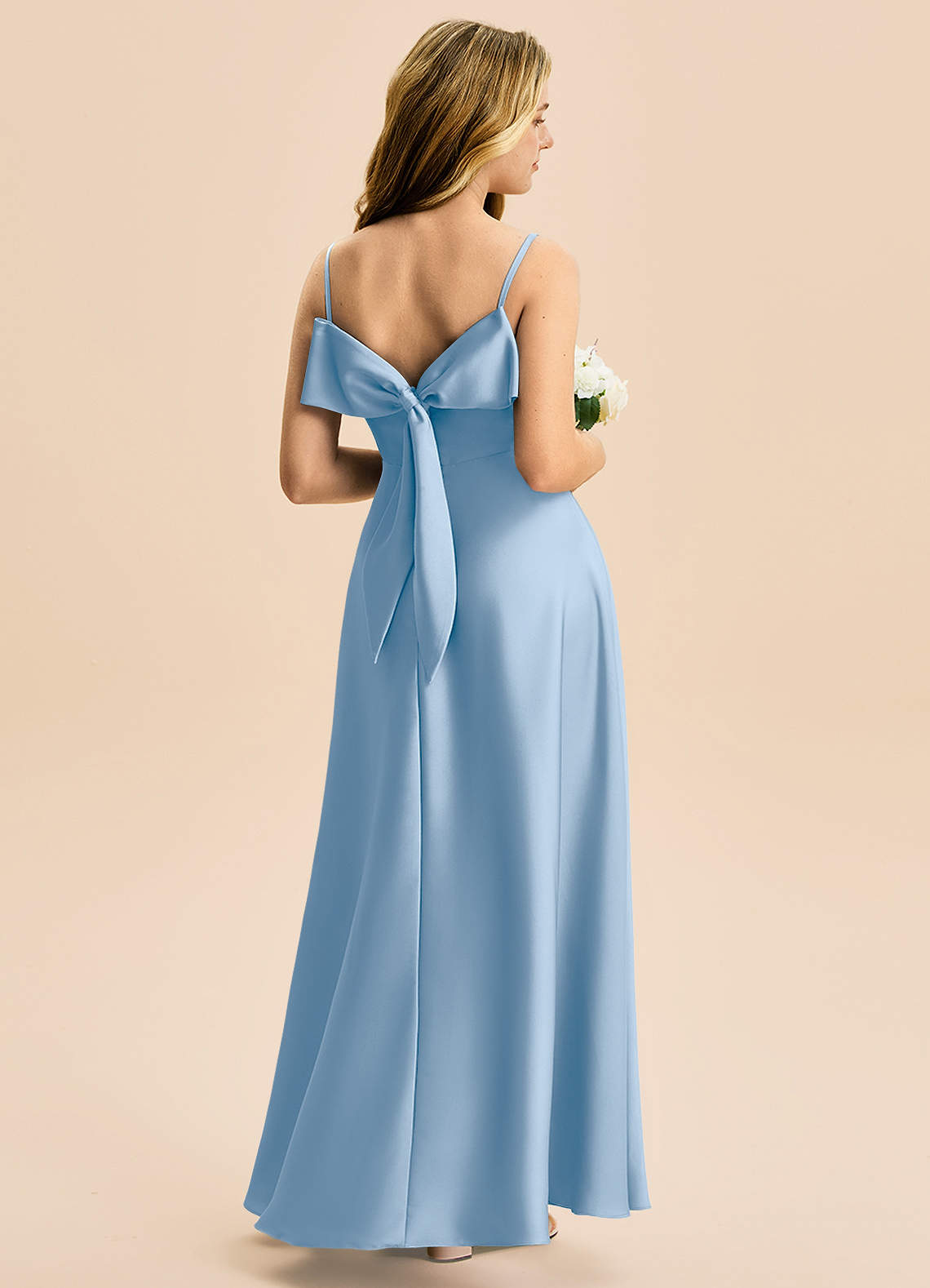 Powder Blue A-Line Pleated Stretch Satin Dress