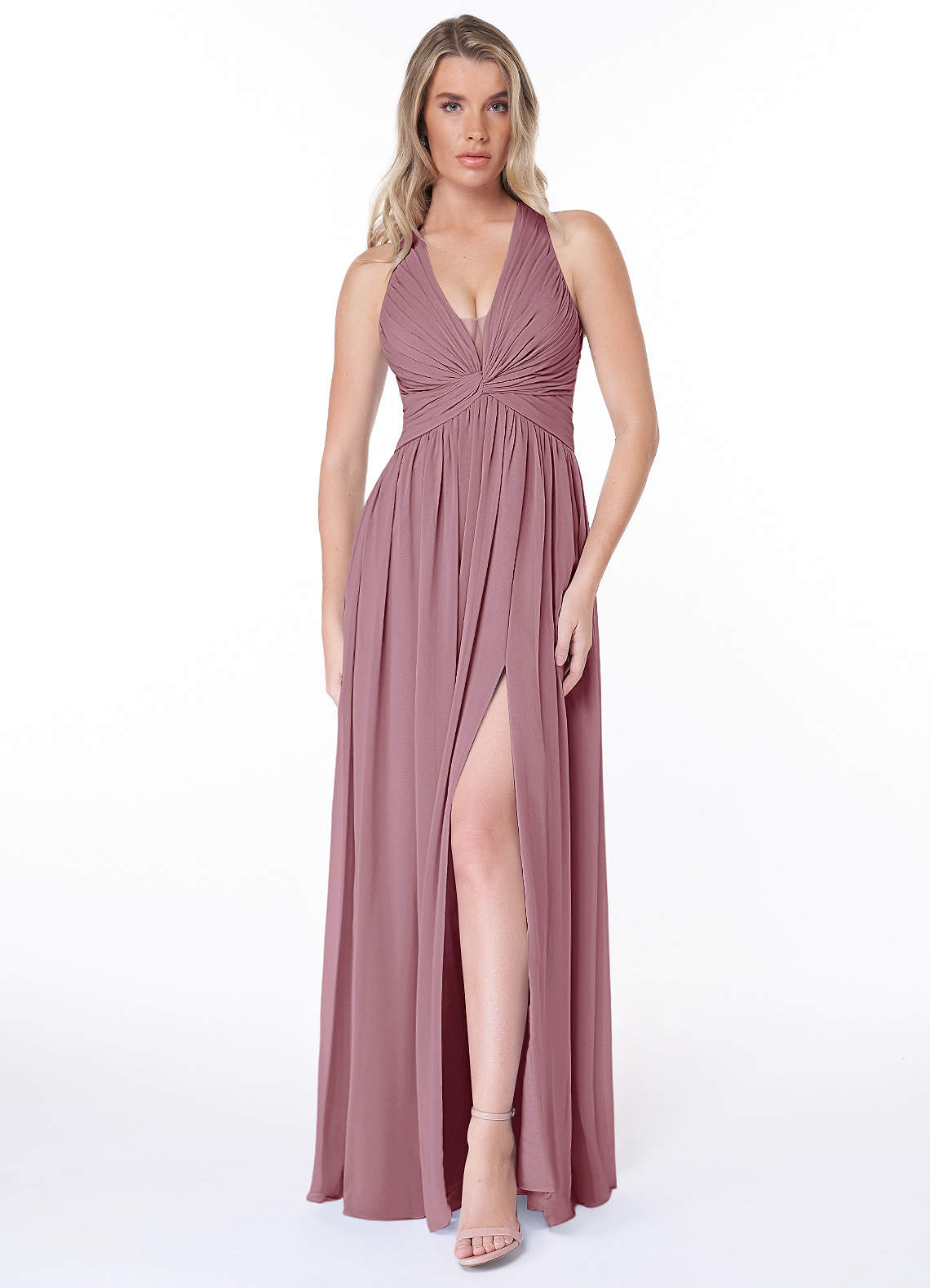 Azazie Jaclyn Bridesmaid Dresses Vintage Mauve A-Line Pleated Chiffon Dress image1