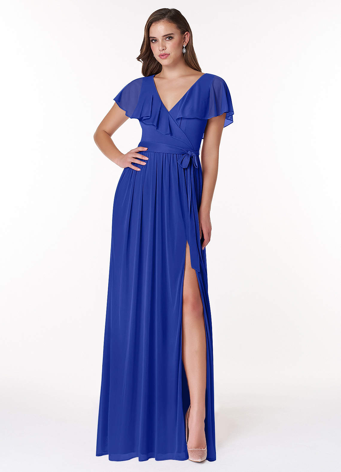 Royal Blue A-Line V-Neck Mesh Dress