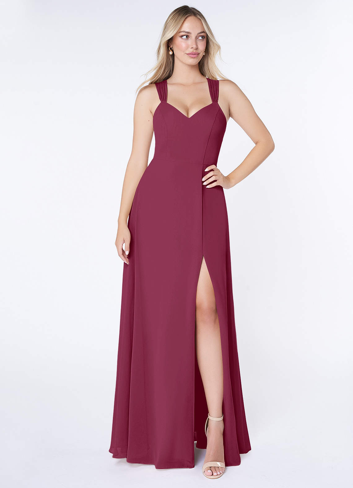 Mulberry A-Line V-Neck Pleated Chiffon Dress