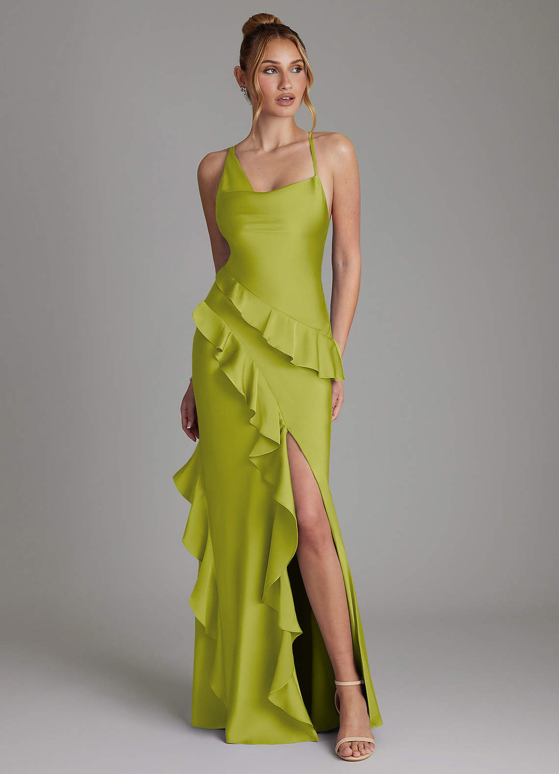 Lemongrass A-Line Ruched Stretch Satin Dress