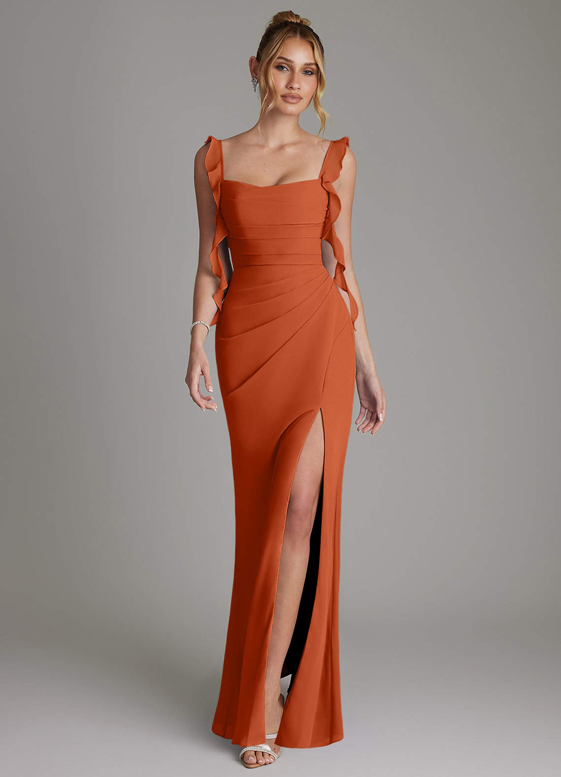 Burnt Orange Mermaid Corset Chiffon Dress