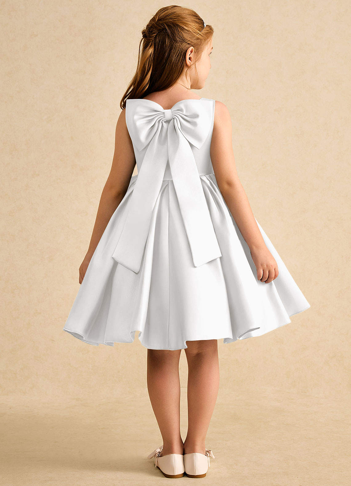 White A-Line Bow Matte Satin Dress