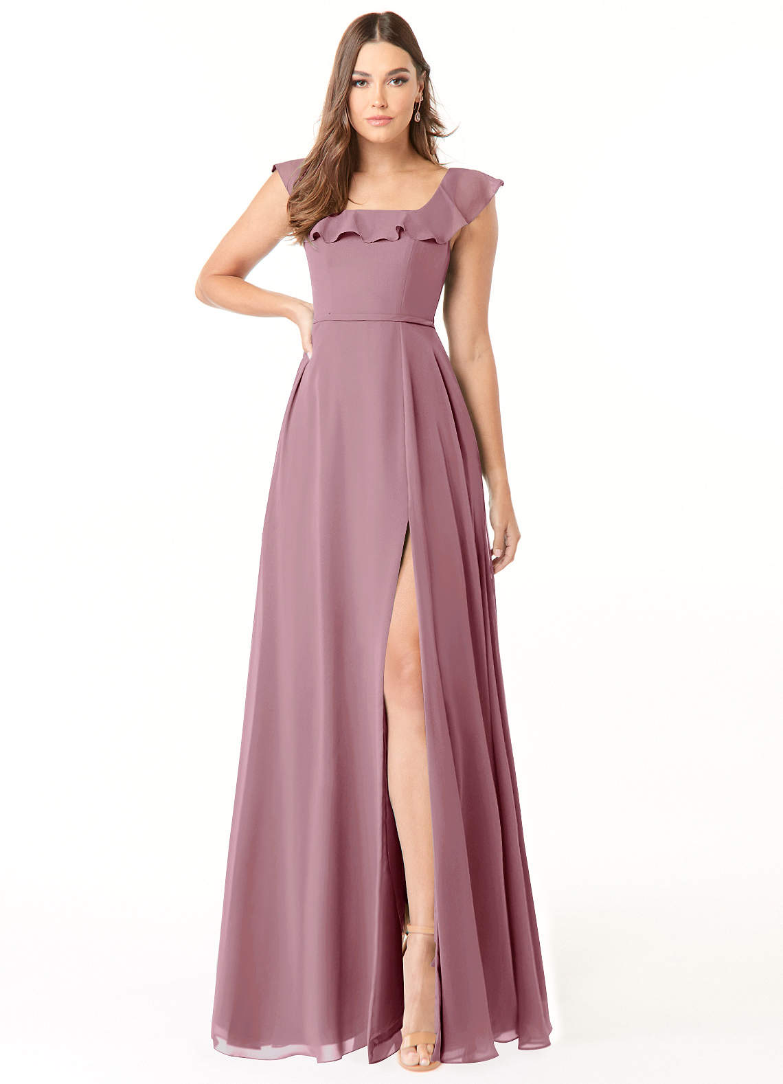 Vintage Mauve A-Line Square Neckline Ruched Chiffon Dress