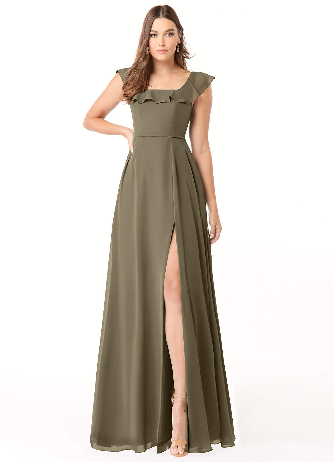 Willow Green A-Line Square Neckline Ruched Chiffon Dress