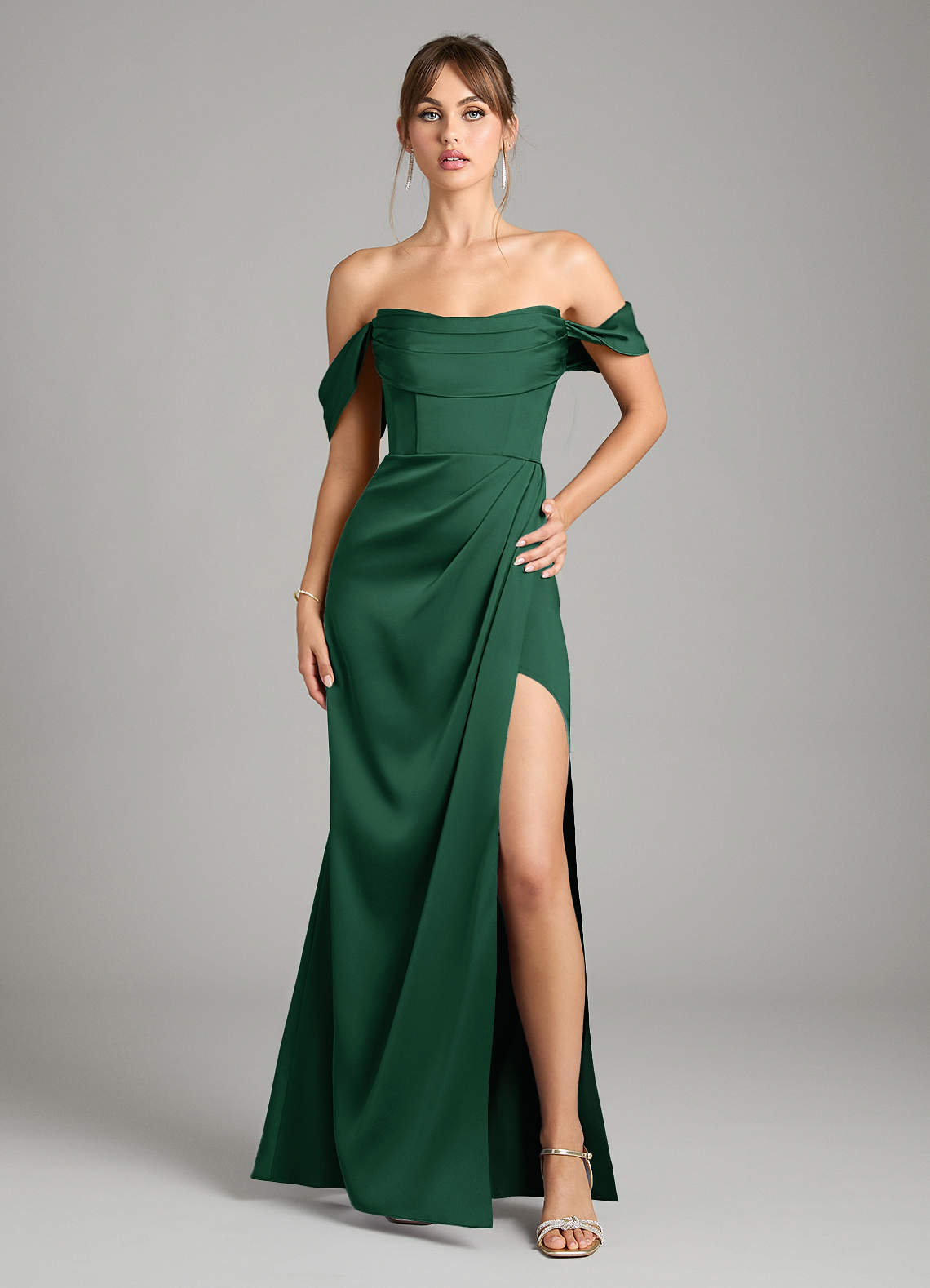 Dark Green Mermaid Off the Shoulder Stretch Satin Convertible Dress
