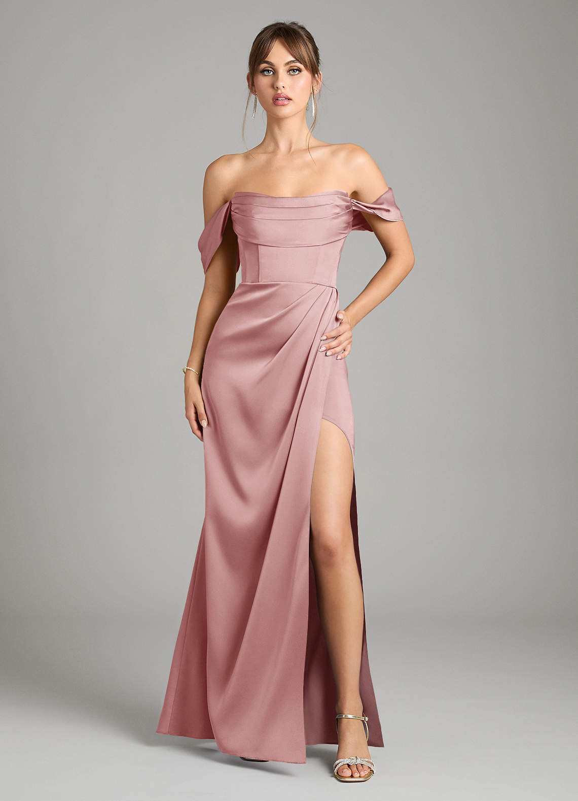 Dusty Rose Mermaid Off the Shoulder Stretch Satin Convertible Dress