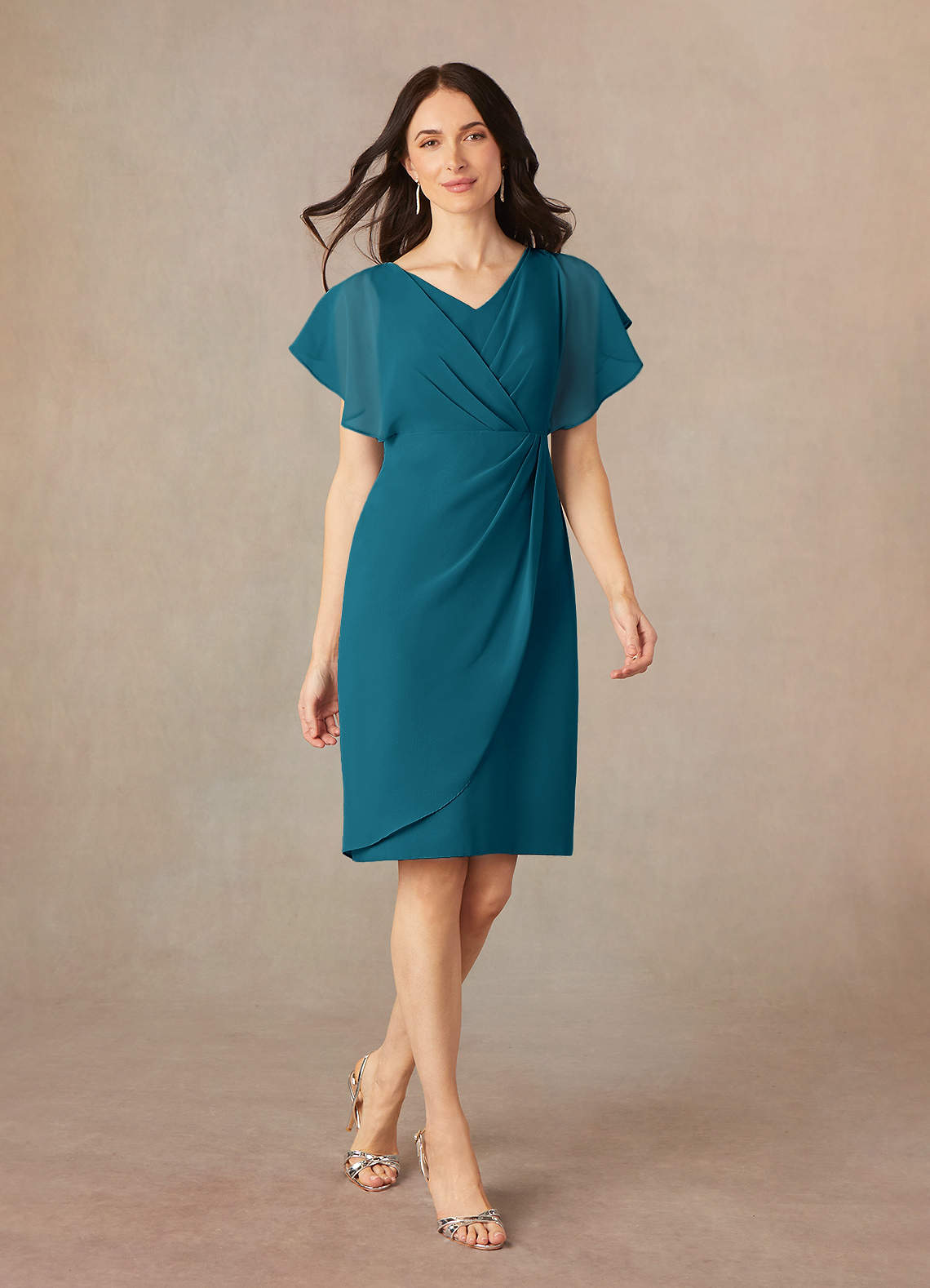 Ink Blue Sheath V-Neck Pleated Chiffon Dress