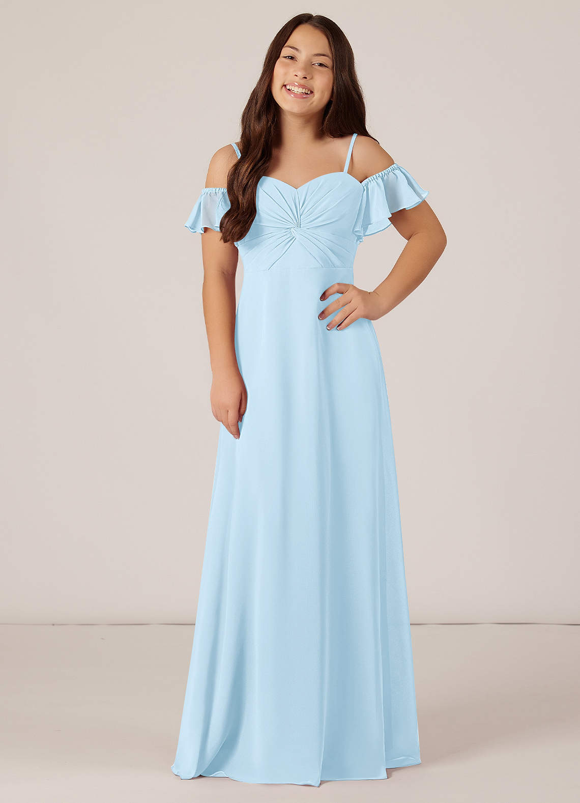 Sky Blue A-Line Off the Shoulder Chiffon Dress