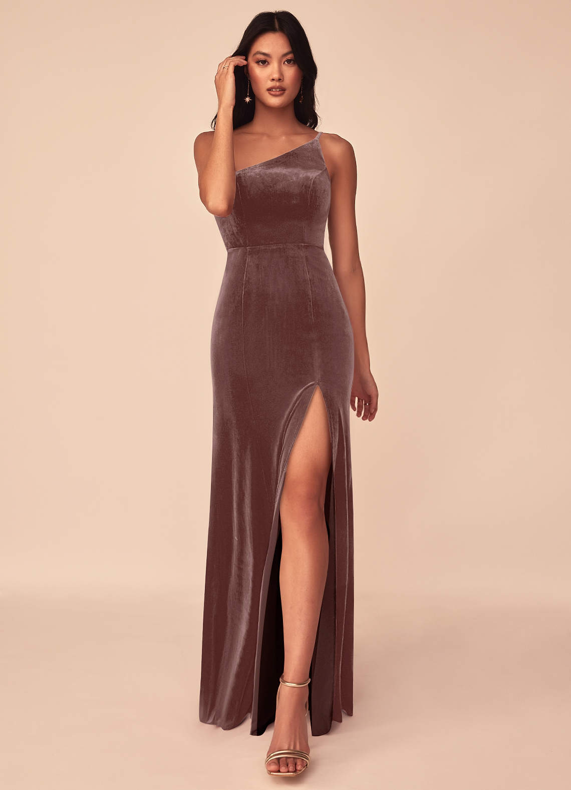 Espresso A-Line One Shoulder Velvet Dress
