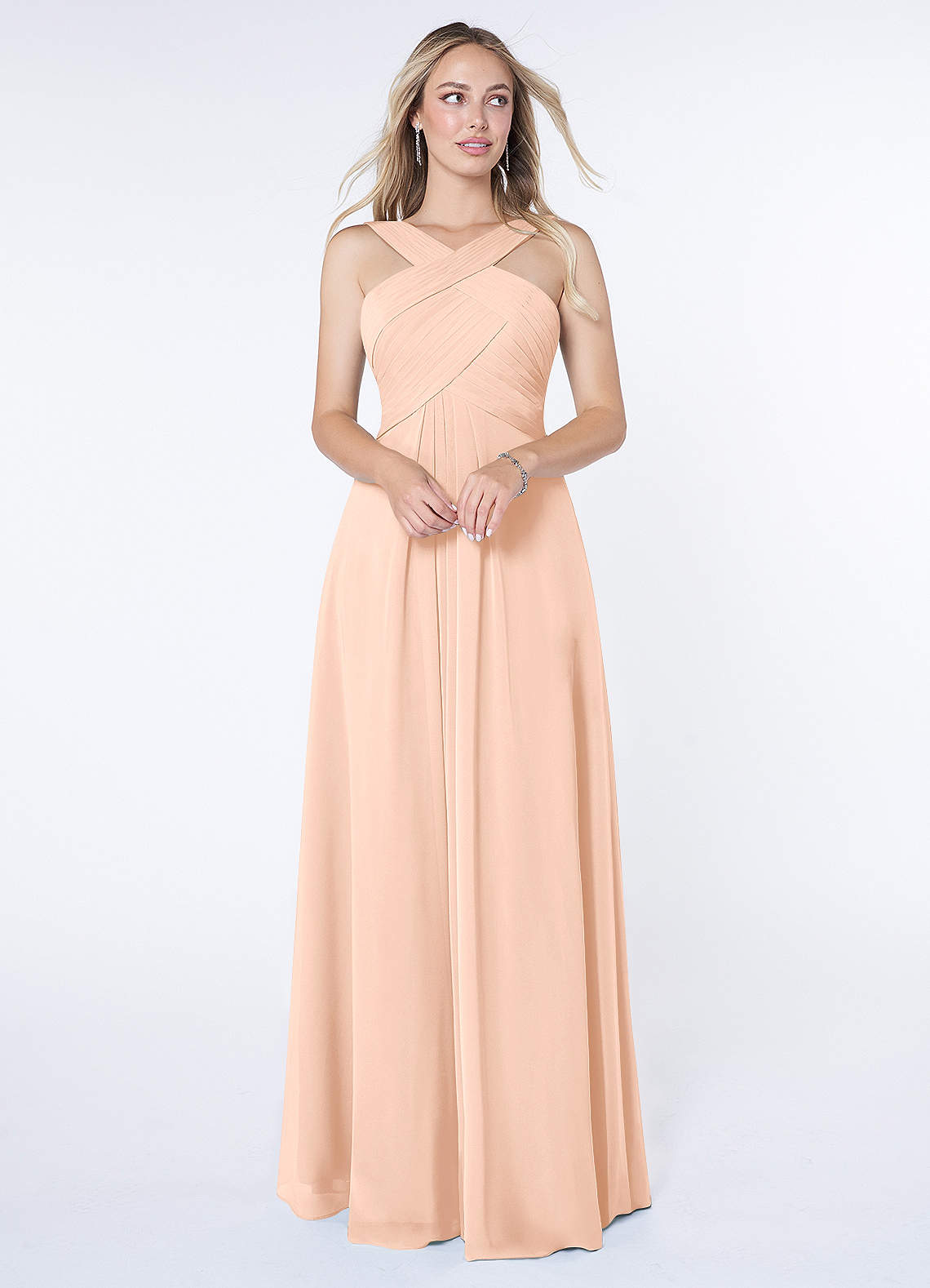 English Rose A-Line Pleated Chiffon Dress