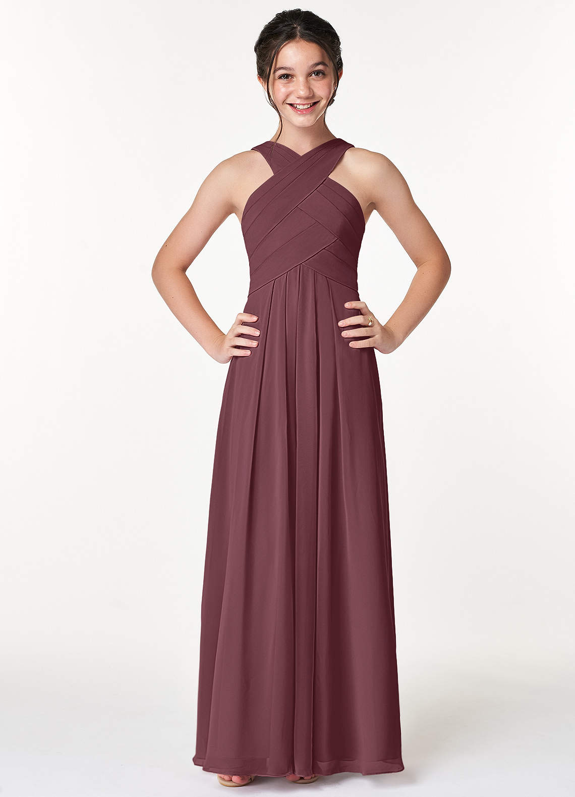 Azazie Kaleigh Junior Agave A-Line Pleated Chiffon Dress image1