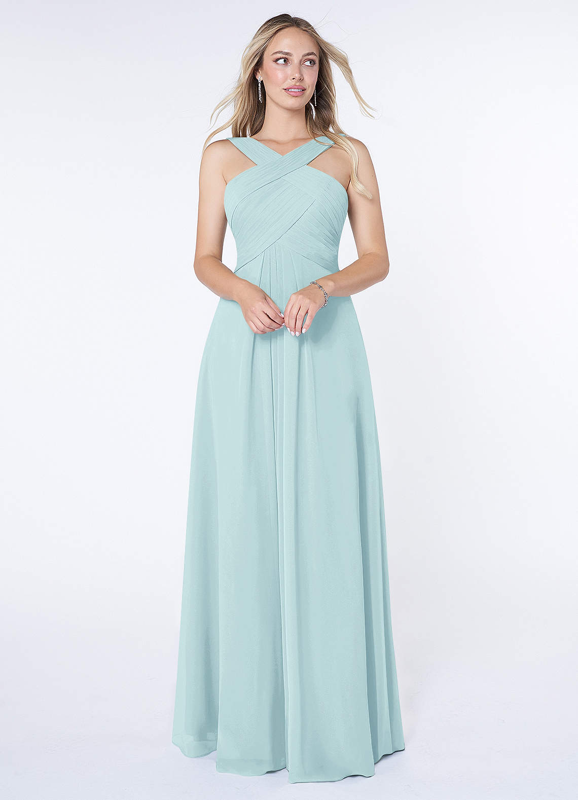 Sea Glass A-Line Pleated Chiffon Dress