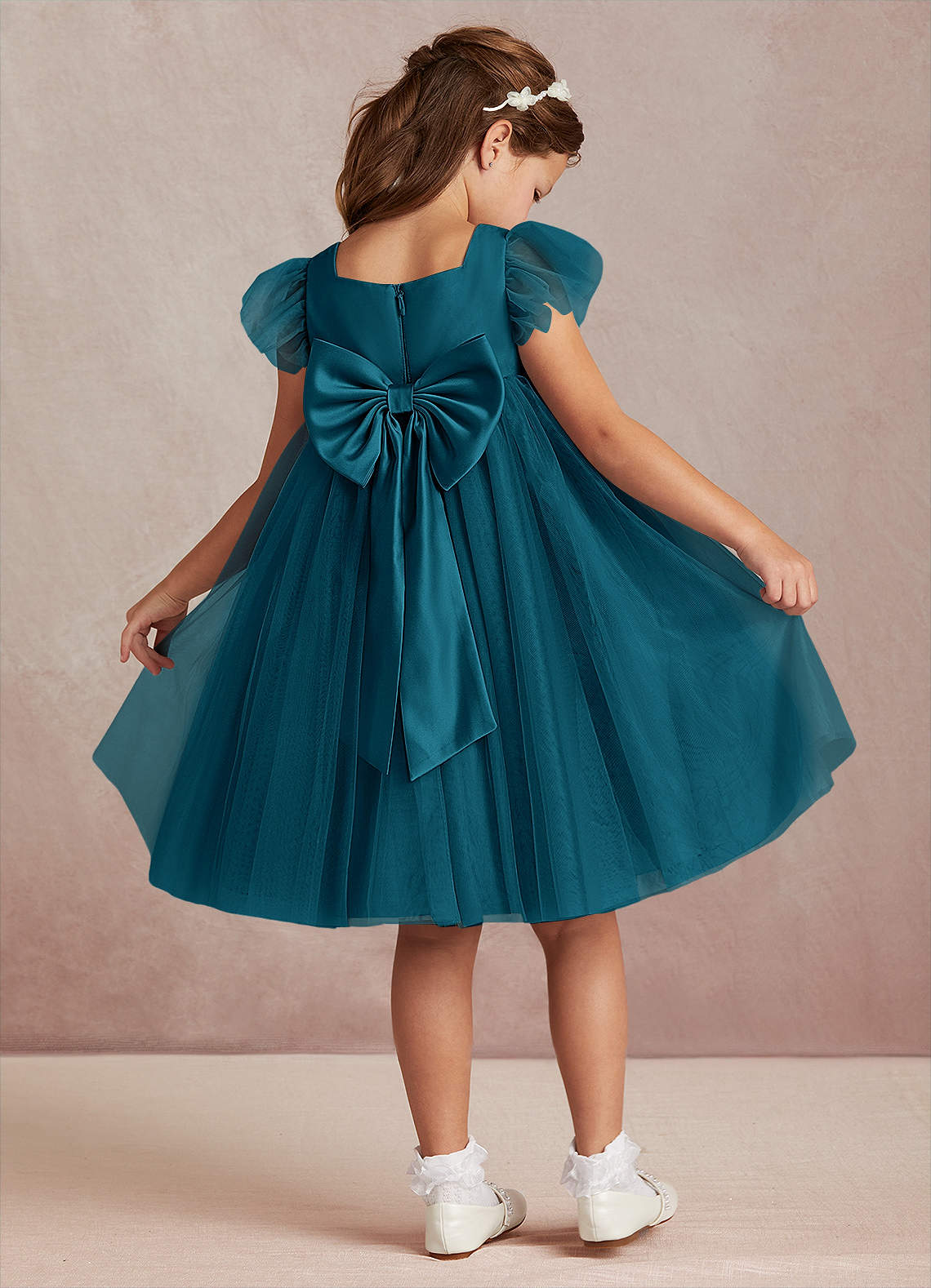 Ink Blue A-Line with Sleeves Tulle Dress