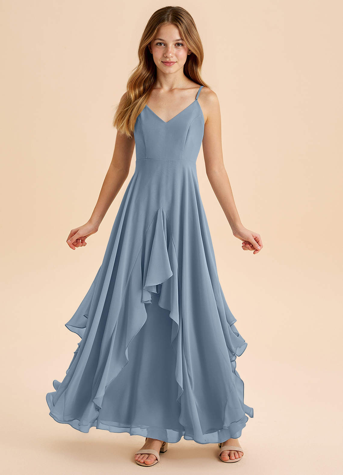 Dusty Blue A-Line Chiffon Dress